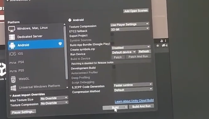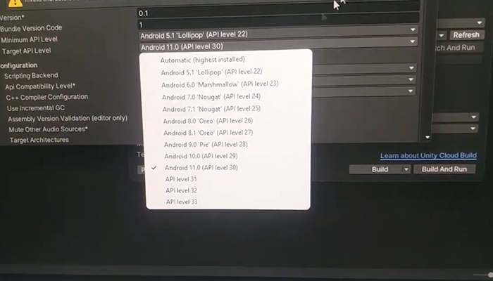This usually happens after clicking the Build button in Build Settings. Unity starts creating the APK, but halfway through, the build fails. Developers often think something is wrong with scripts, JDK, or modules—but the real issue is related to the Target API Level.